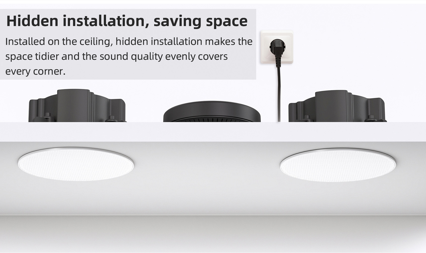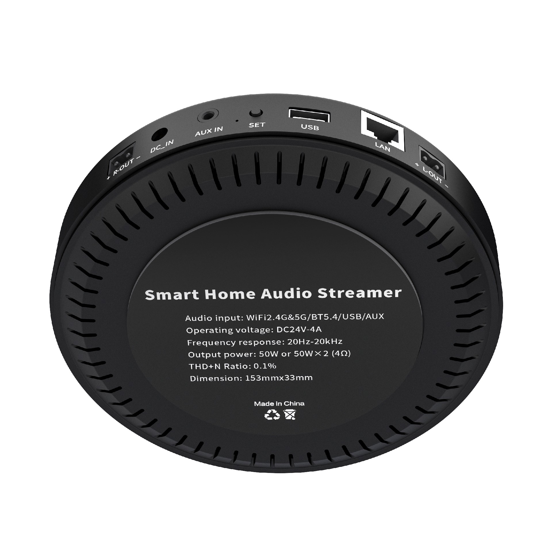 ACAmp wireless audio in ceiling amplifier allows users to stream their HiFi music from their favorite smart devices, such as android phone or tablet, iPhone, iPad, Mac or personal PC. Besides play personal local library, ACAmp also provide massive online music or tunes services for our users, such as Spotify, Qobuz, TuneIn, vTuner, Tidal, Apple Music, YouTube Music and more service will coming by global online update, which offers our users get access to millions of music and tunes . The small dimensions of this flat round case plus the presence of a wireless connection to the network – allows you to place the streamer amplifier in the ceiling space, and sound the room in those cases when it seemed that it was completely impossible! It is only necessary to supply 220 volts to the amplifier