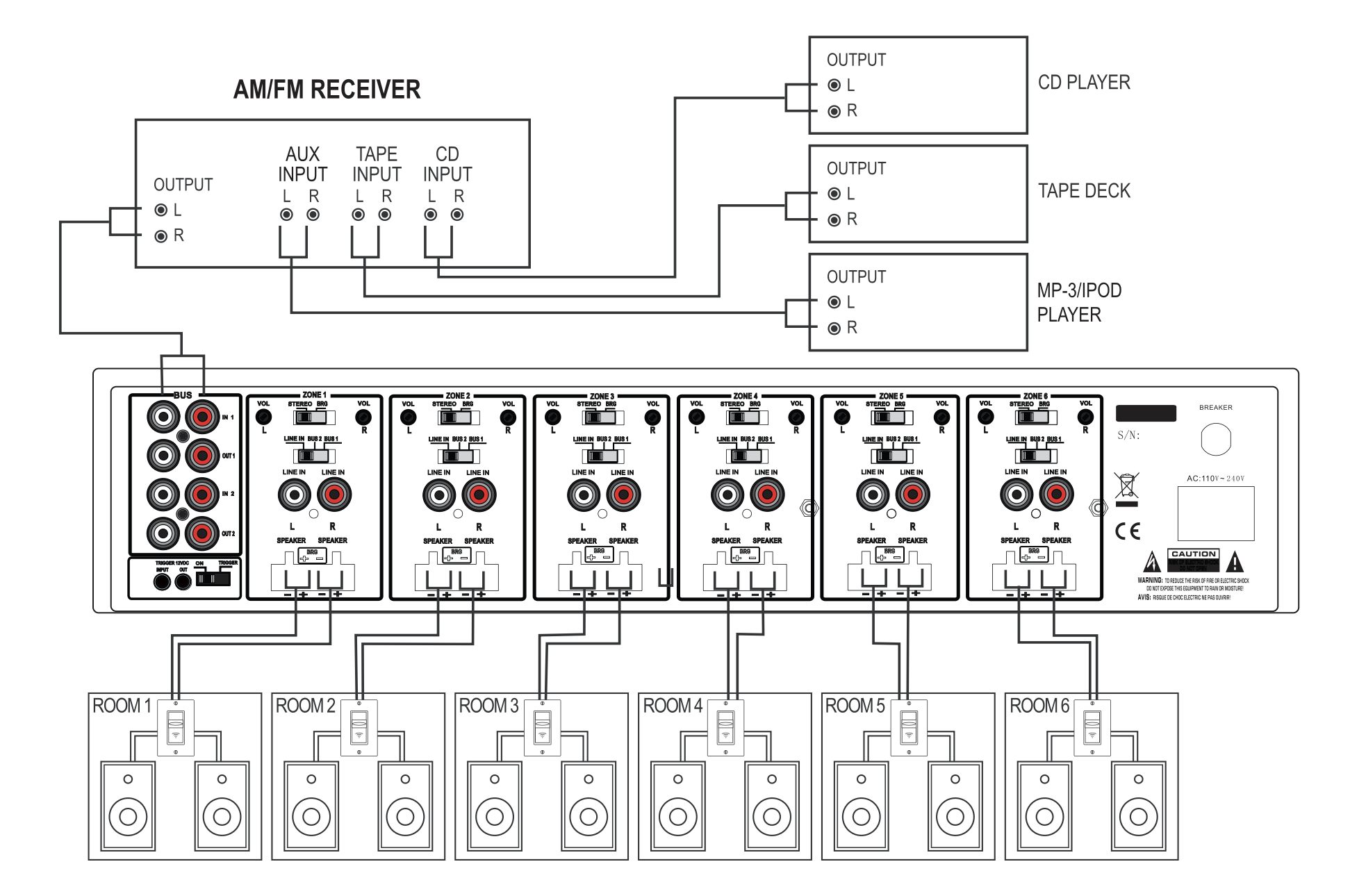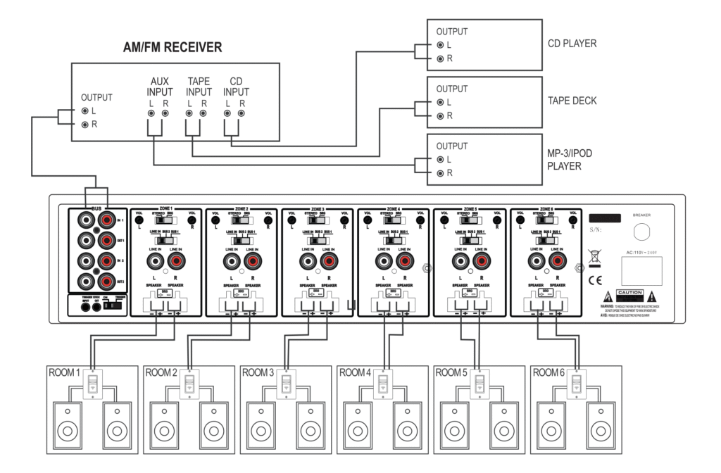 | Output Chanel: | 8 in model AMP8 12 in model AMP12 |